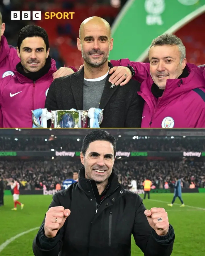 瓜迪奥拉曼城首冠正是联赛杯胜枪手,当时阿尔特塔坐在他身旁的助教席