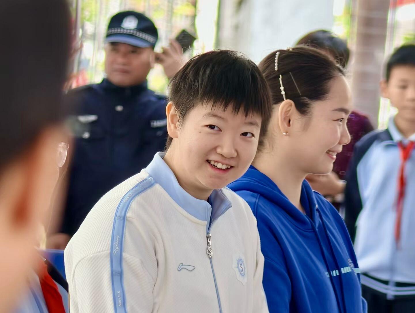 王楚钦、王曼昱、陈熠、陈俊菘等人去了另外一个学校参加国乒校园行活动,同样受到热烈欢迎。王曼昱的个性和孙颖莎不一样,她在人群中有些拘谨。2024年奥运健儿港澳行期间,我们经常看到王曼昱喜欢一个人待着玩手机。相比之下,孙颖莎、全红婵等人玩得不亦乐乎。