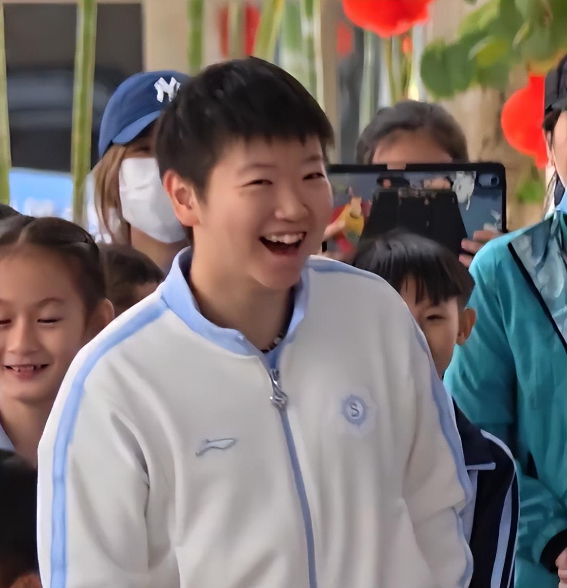 孙颖莎穿上了白色的外套,她和小朋友们一起玩得很开心,脸上不时浮现笑容。在活动进行期间,孙颖莎甚至一度欢乐到笑弯了腰。不得不说,孙颖莎身上有着天然的亲和力。这或许也是她成为现役人气最高的中国运动员之一。