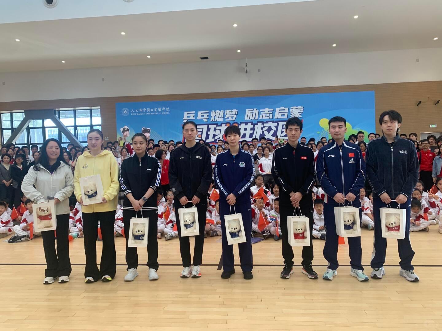 国乒将士们和学生们进行乒乓球对练,分享一些心得经验,鼓励孩子们好好学习,同时多参加体育锻炼,让自己的身体变强壮。这次的亚洲杯是国乒将士们在今年集体作战的第一个大赛,期待国乒取得佳绩!