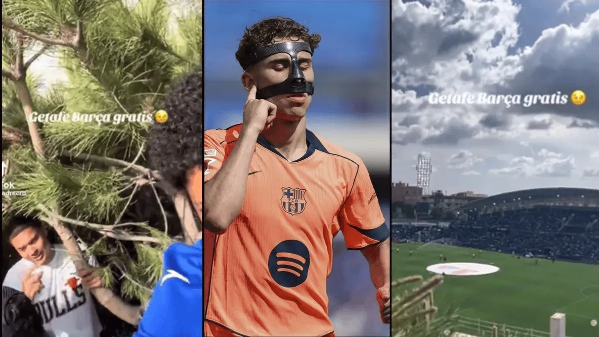 据用户@aandreerd在社交媒体上分享,有球迷为了免费观看比赛,爬上了球场附近的树,从高处远距离观看了这场赫塔费对阵巴萨的比赛。这种做法其实并非首次出现,三年前类似场景就曾发生过。